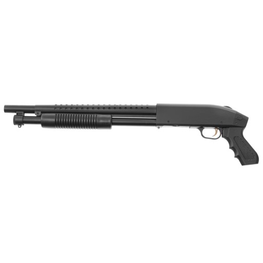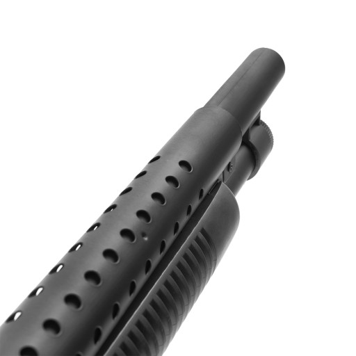 Пружинна копія рушниці Mossberg 590 виконана з металевих і пластикових елементів. Металевими елементами цієї копії є внутрішній ствол, охолоджувач ствола та камера зберігання, розташована під стволом. Такі елементи, як рукоятка, зовнішній ствол, рукоятка заряджання і корпус були виготовлені з пластику.