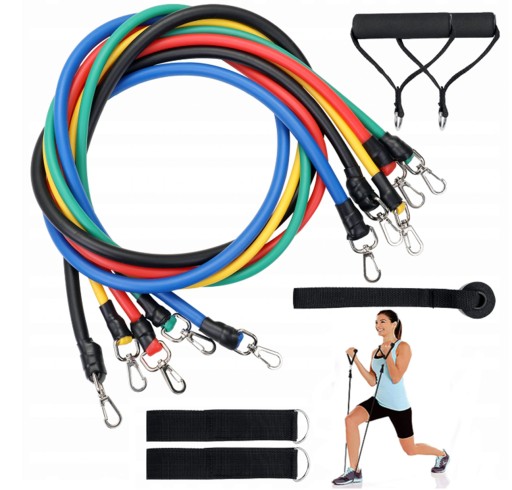 Ви можете використовувати цей набір з 11 тренувальних ремінців для більш ніж 50 різних фітнес-вправ. Набір підходить для чоловіків і жінок. Оскільки набір можна зберігати в сумці з ручками, його можна брати з собою куди завгодно.