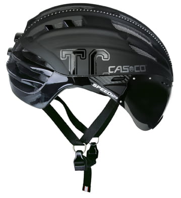 Найбільш технологічний аеродинамічний шолом на ринку. Головною перевагою шолома є його конструкція: він складається з двох оболонок, розташованих одна на одній, завдяки чому наша голова у граничній безпеці. Верхня внутрішня частина шолома підвішена сіткою, яка призначена для забезпечення максимальної вентиляції користувача. Шолом аеродинамічний у будь-якому положенні завдяки системі спойлерів, розташованих ззаду. Шолом регулюється по двох площинах по окружності і глибині утримуючого кільця. Зняти шолом дуже легко завдяки запатентованій системі CASCOLOC, яка дозволяє відстібнути підборідний ремінь одним потягуванням. Шолом із лінзами CARBONIC, який підходить для людей, які користуються окулярами. Колір скла ЧОРНИЙ