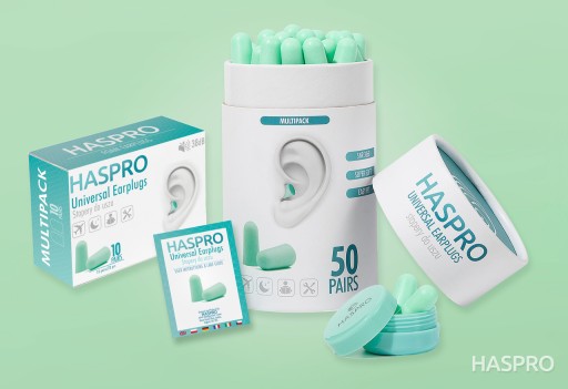 Haspro Tube50 – це сучасна збірна упаковка у вигляді туби, що містить 50 пар одноразових берушів із зручного та надзвичайно ніжного пінополіуретану, які легко вставляються в кожне вухо менш ніж за хвилину.