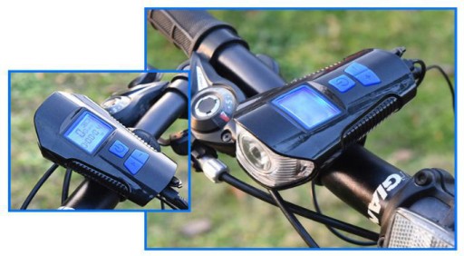 Однак велофара з акумулятором - це не просто звичайне освітлення - датчик, що входить в комплект, і 5 вбудованих режимів вимірювання роблять його багатофункціональним реєструючим пристроєм. Завдяки йому ви можете перевірити пройдену відстань (режим ODO), середню швидкість (AVS), пройдену відстань за один маршрут (DST), час руху (TM) і максимальну швидкість (MXS). Все це представлено на чіткому дисплеї з підсвічуванням. Лічильником керують за допомогою великих водонепроникних кнопок на пристрої.