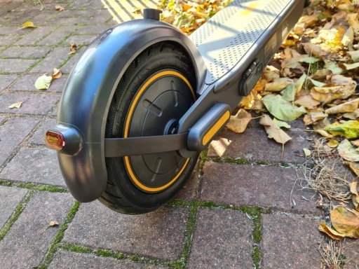 Він захищає блискучий пластик від подряпин, але, перш за все, забезпечує захист від води. Зазор навколо кнопки активації самоката, на жаль, є непродуманим елементом конструкції, і під час дощу крізь нього може потрапити вода, пошкодивши всю панель, а отже, і самокат.