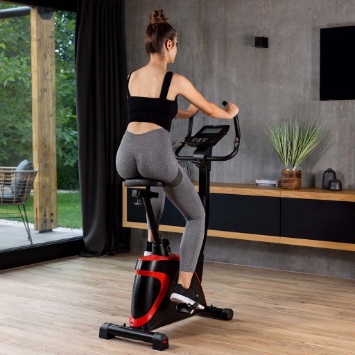 Bike Host - тренажер, призначений для регулярних тренувань в квартирі або домашньому спортзалі. Ідеально підходить для новачків і досвідчених користувачів. Його переваги, такі як ергономічний дизайн, надійна система опорів і сучасний комп'ютер, гарантують високу ефективність занять. Багатофункціональний комп’ютер із сенсорним РК-дисплеєм пропонує доступ до багатьох програм і функцій, таких як Body Fat, HRC, Recovery, щоб зробити ваші вправи більш привабливими. Сенсорні датчики, розміщені на рукоятках керма, дозволять швидко вимірювати пульс під час тренування. Система магнітного опору характеризується плавною, тихою роботою. Завдяки електронному регулюванню зміна навантаження не порушує ритм водіння. Універсальне регулювання сідла та регульований кут керма роблять велосипед HS-005H HOST ідеальним для зросту спортсмена.