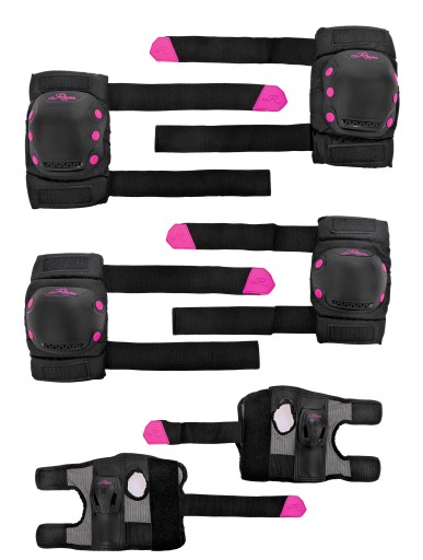 - Система Velcro забезпечує ідеальну посадку протекторів і запобігає їх зісковзуванню (колінний і ліктьовий з еластичними липучками)