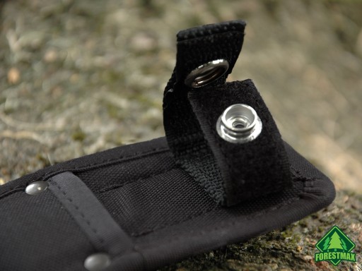 Ручка виготовлена з міцної нейлонової мотузки, яку при необхідності можна замінити іншою підкладкою. До ножа додаються зручні та легкі піхви, виготовлені з міцної лямки, яка має металеву кліпсу, що дозволяє кріпити ніж до пояса, рюкзака чи жилета.