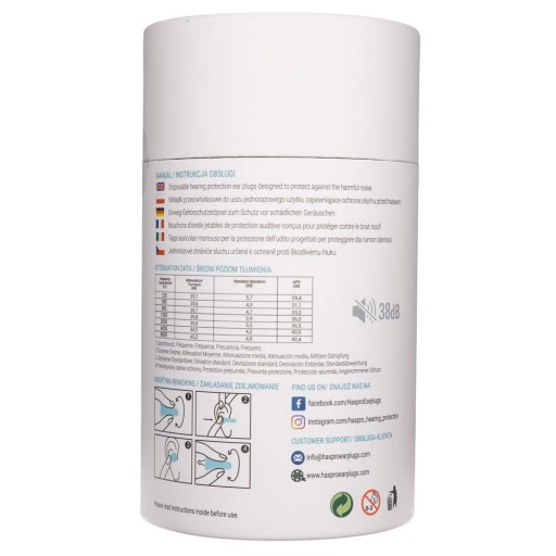 Haspro Tube50 — це сучасна збірна упаковка у вигляді туби, що містить 50 пар одноразових берушів із зручного та надзвичайно ніжного пінополіуретану, який легко адаптується до кожного вуха менш ніж за хвилину. Додатково до кожного набору йде невеликий контейнер для зберігання пробок.