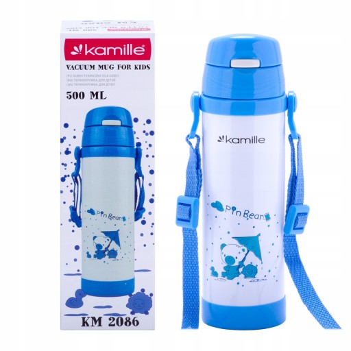Термокружка дитяча з ремінцем і трубочкою 500 мл KAMILLE KM-2086