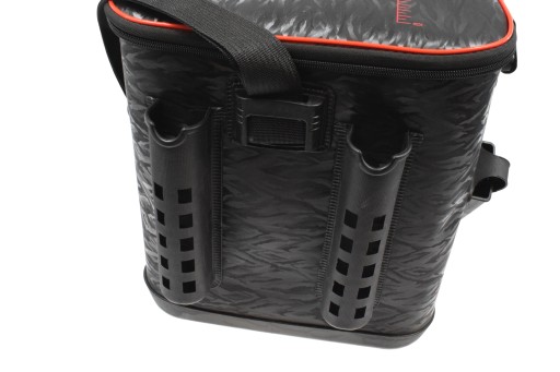 Велика і жорстка сумка з матеріалу EVA, стійкого до пошкоджень і забруднень. Сумка оснащена тримачами для вудилищ, спеціальним отвором, що дозволяє встановити аератор для живців, а матеріал і обробка забезпечують 100% водонепроникність.